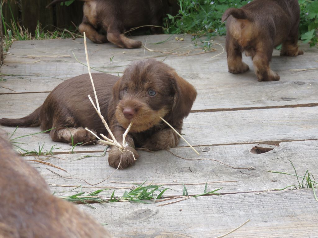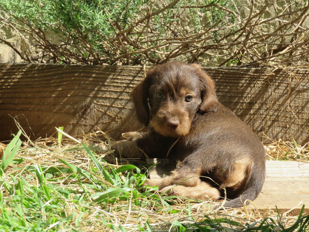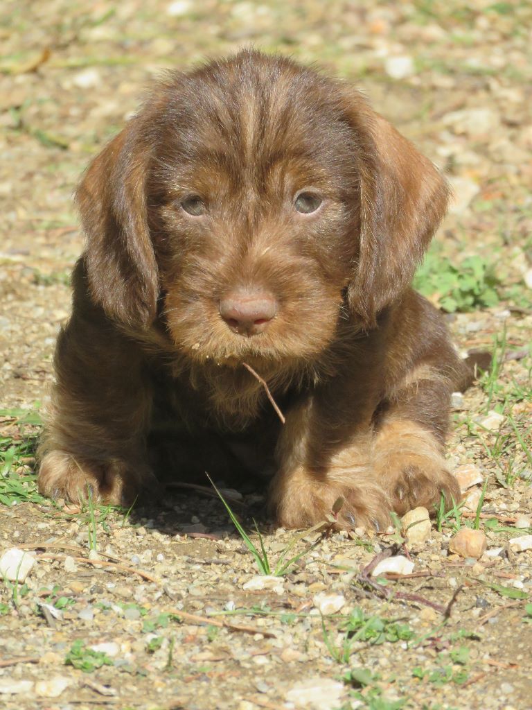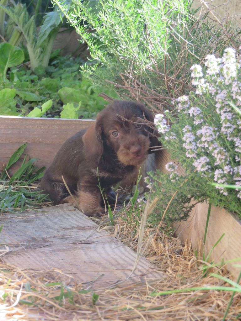 mâle chocolat - joueur et affectueux - Il partira rejoindre une famille dans l'Aveyron, de belles ballades en perspective et peut-être entrainement à la recherche de truffes...